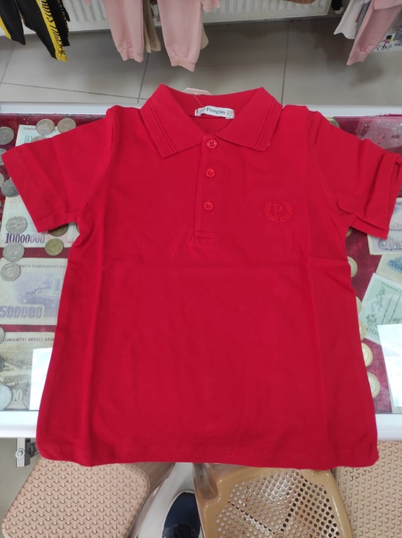 T-Shirt: Polo yaka düğmeli, renk kırmızı
