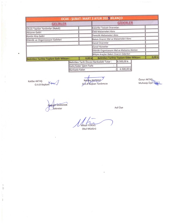 Okul Aile Birliğimizin Ekim-Kasım-Aralık 2024 dönemi gelir gider...
